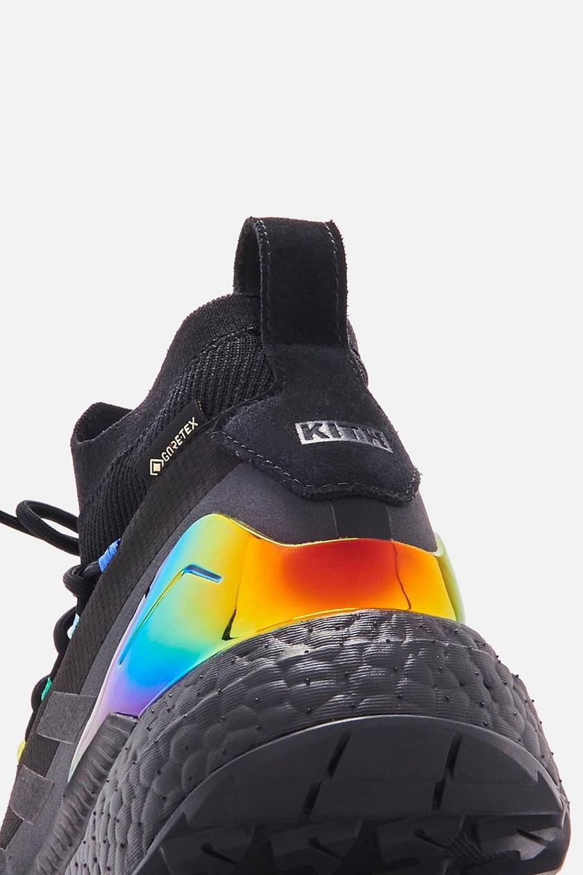 KITH 主理人 Ronnie Fieg 近日在 ins 透露了一双 KITH 与 adidas 最新合作鞋款的细节谍照。双方本次联名以黑色贯穿鞋身,镭射变色设计塑造的后跟 TPU 支架,酷炫至极。KITH logo 的点缀则表明了联名身份。