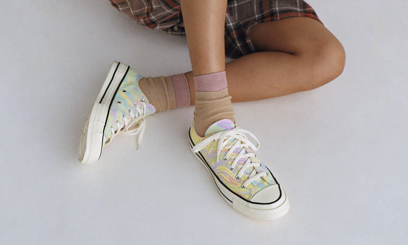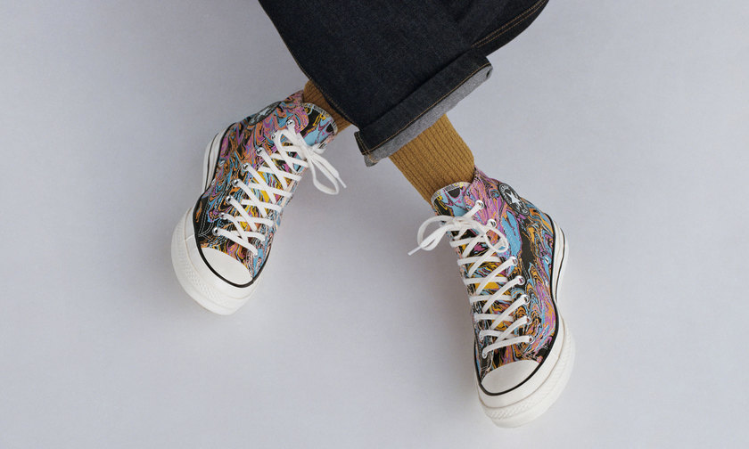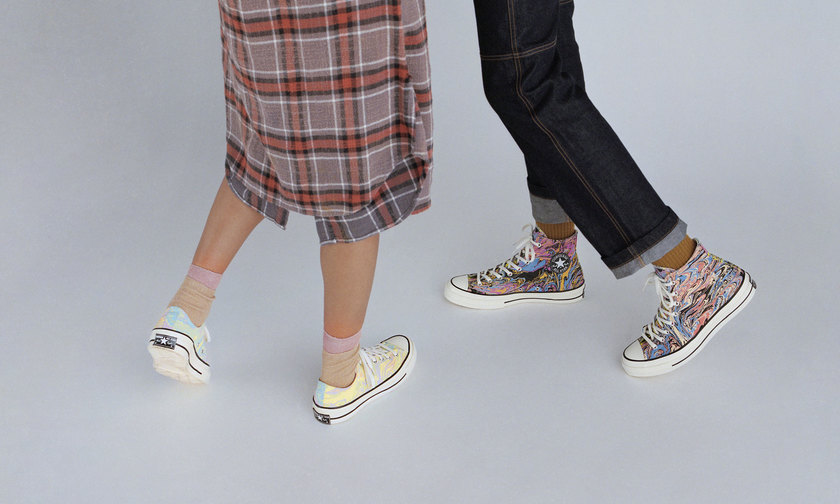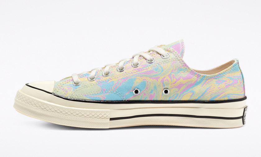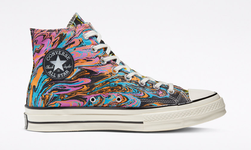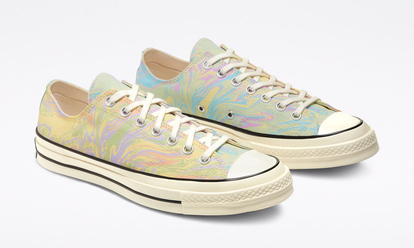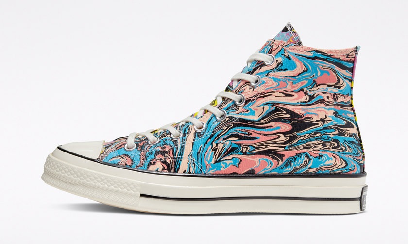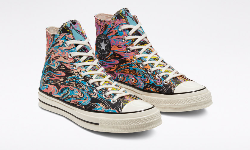 而除了 Shearling 系列以外,昨日 Converse 还发布了Chuck 70 Marble 系列,这一系列包括高低帮两个版本。灵感来源于日本手工浸染手艺,鲜艳迷幻的大理石纹理的注入,张扬个性,艺术感强烈。