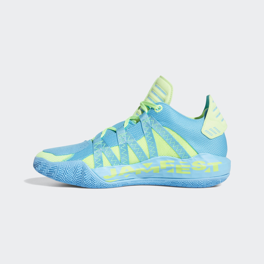 其中一款颇为独特,采用了外绿内蓝的阴阳设计。清新的色调加上造型前卫的鞋身轮廓,潮流感十足。而中底创意十足的 JAMFEST 字样,又极具辨识度,为整体增添了一丝亮点。