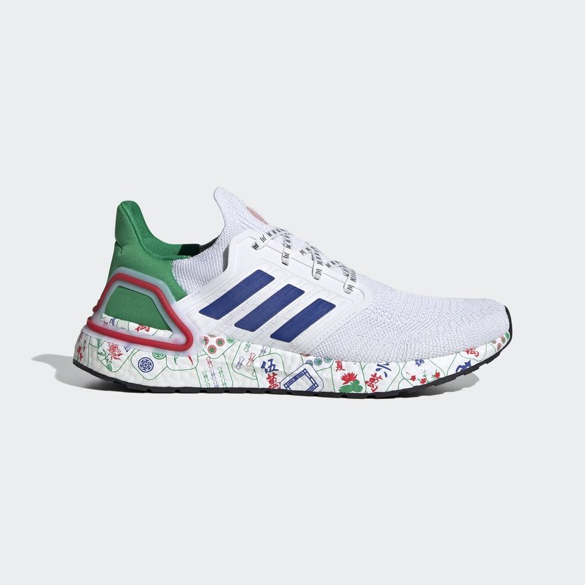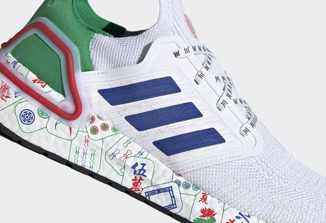 最近频繁释出新配色的 Ultra Boost 系列最新一代 Ultra Boost 20 又迎来了一款相当特别的全新配色。这款配色采用麻将主题塑造,纯白鞋面搭配绿色后跟,蓝色三道杠,呈现抢眼的视觉效果。
