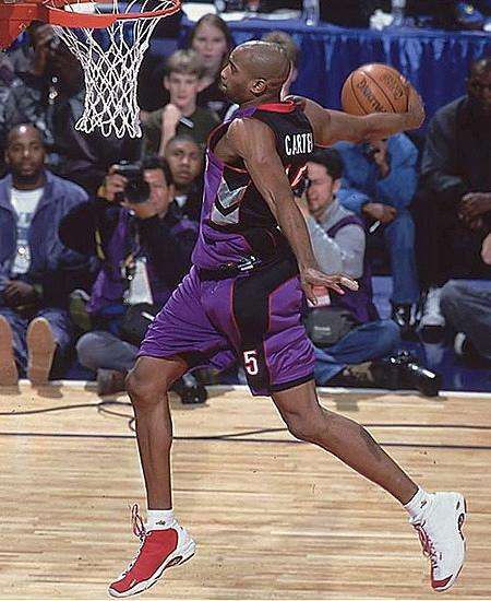 众所周知,1998和1999年,NBA取消了扣篮大赛,联盟里一众才华横溢的新人英雄无用武之地。终于,2000年,扣篮大赛卷土重来,众多扣将包括麦迪、弗朗西斯等都跃跃欲试,其中血气方刚的文斯-卡特更是憋着一口气,他也被很多球迷看作夺冠的大热门。但是问题来了,卡特如今已经不是彪马的人了,现在他该穿什么鞋子出战呢?