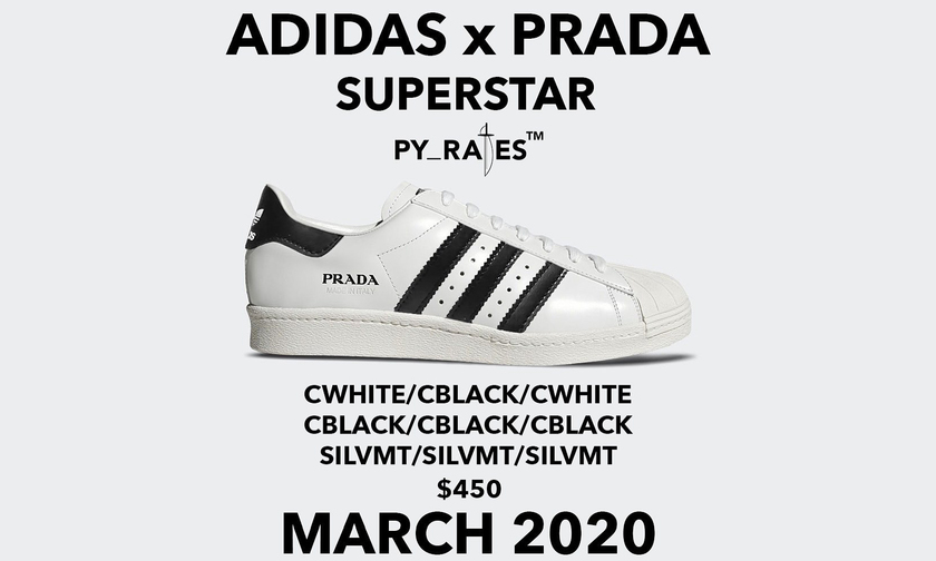 继首发白色限量套装释出后,ins 知名情报账号 @py_rates 又为我们曝光了一系列 Prada for adidas Superstar 新配色,包括黑白、纯黑以及金属银三款,将于今年三月登场。