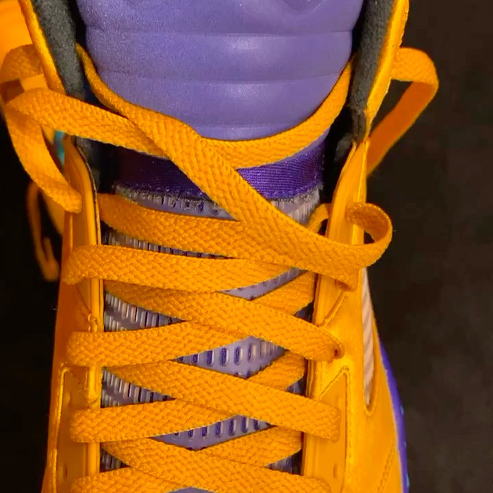 这款重磅狠货灵感来源于Will Smith 的经典电视剧《新鲜王子妙事多/The Fresh Prince of Bel-Air》,据说是只有 23 双的亲友限定版本。其以黄色绸缎鞋面搭配紫色鞋舌、中底示人,高级材质与醒目色调的搭配,使整体效果吸睛又华丽。鞋舌处还保留了 3M 反光设计,暗光下依旧闪亮瞩目。