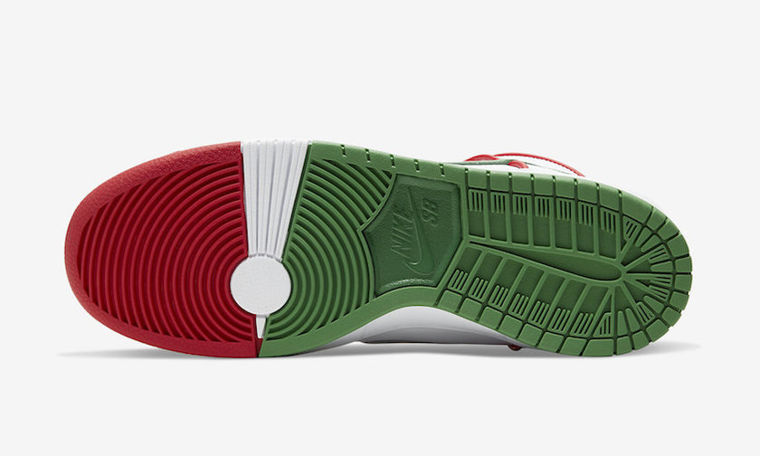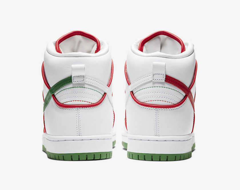 这款联名以白色皮革为主打,红色饰边、红绿 Swoosh 以及红白绿拼接外底的点缀,使整双鞋充满了活力。