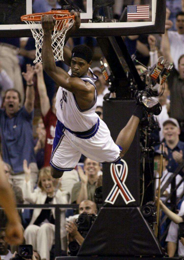 其实五虎并没有拿到过NCAA的冠军,但大学期间的韦伯却干成一件可以吹一辈子的事儿,当然这件事是和上一期的主角格兰特-希尔以及第一期的主角便士哈达威他们一块干的。
