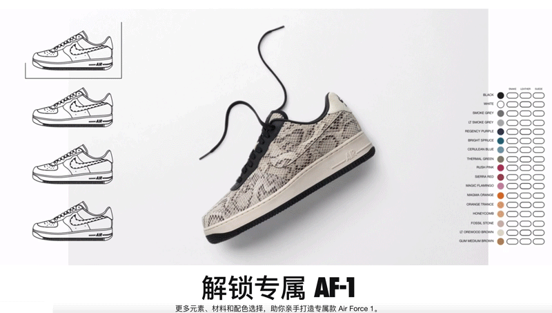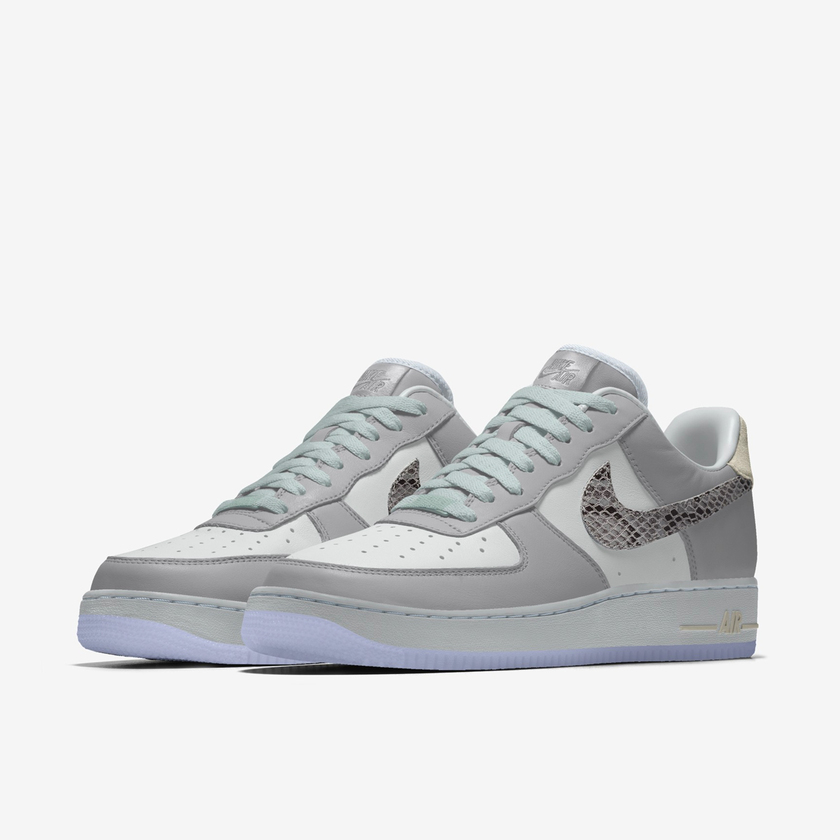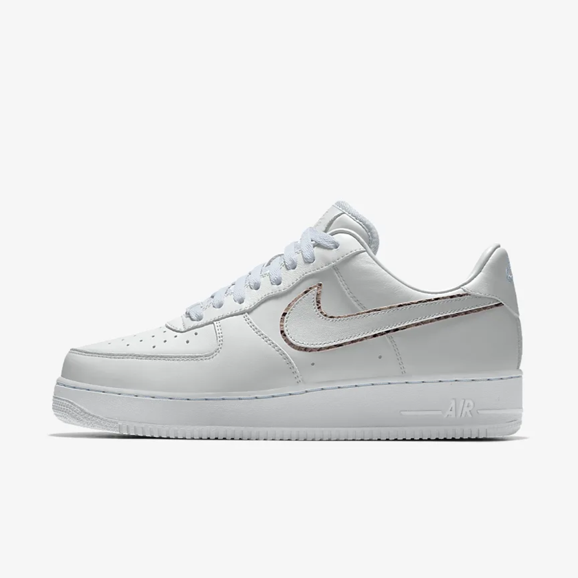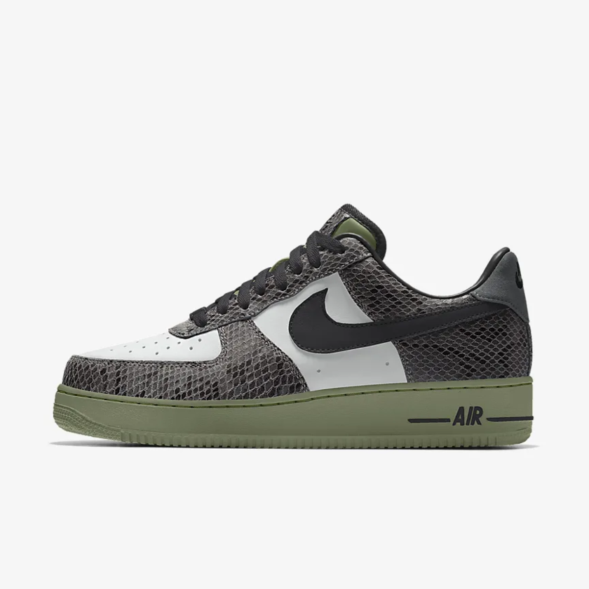 近日,Nike By You 为 Air Force 1 新增了蛇纹定制选项,喜欢 Air Force 1 定制配色的朋友又多了许多选择。Nike 官方也提供了几款蛇纹元素的个性玩法,纯蛇皮纹理鞋面,与皮革拼接的蛇纹鞋面以及小白鞋搭配蛇纹饰边 Swoosh 造型等等,抢眼度都极其高。