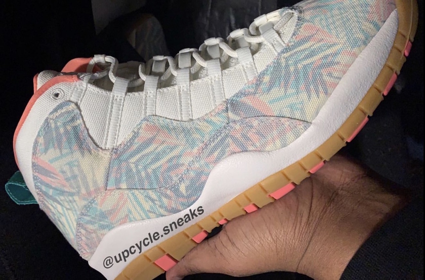 这一系列包括两种鞋型,此番其中的 Air Jordan 10“Super Bowl LIV”实物首次曝光。采用白色主打搭配南海岸风格花纹,再饰以粉色调与孔雀蓝点缀,吸睛度爆棚。帆布材质的塑造也比以往的皮革要更让人眼前一亮。