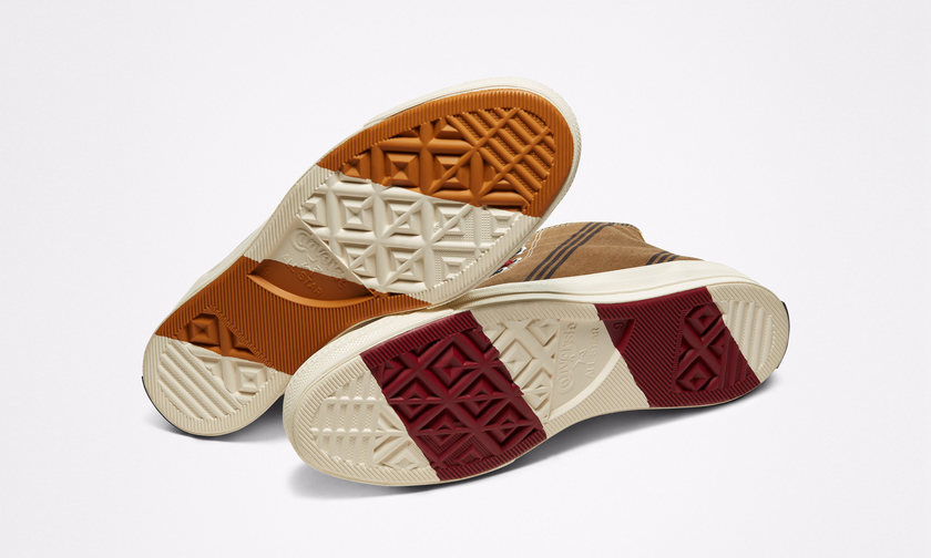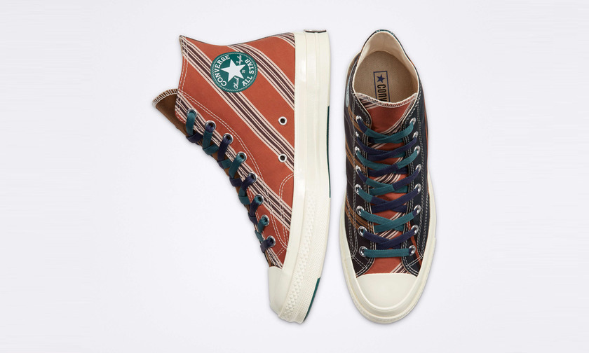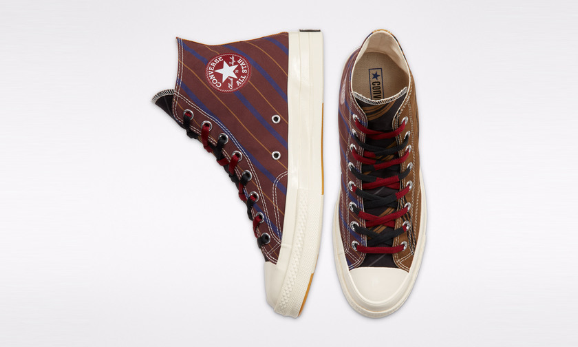其中 Chuck 70 从常春藤学院的条纹领带与内里衬衫中得到启发,经典日本丝绸面料搭配独特印花以及拼色鞋带,诠释休闲与传统兼具的经典学院风。