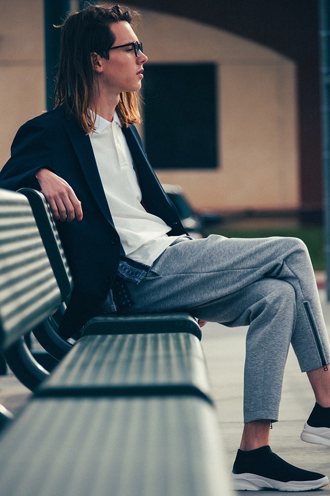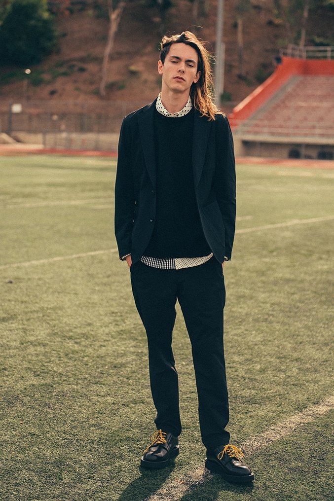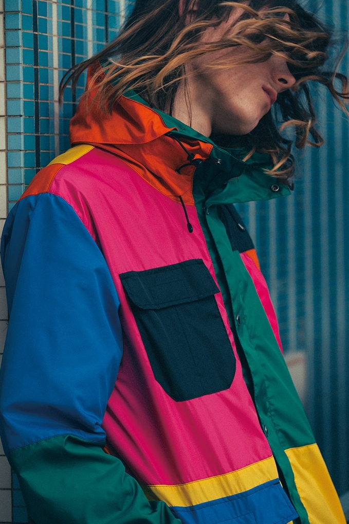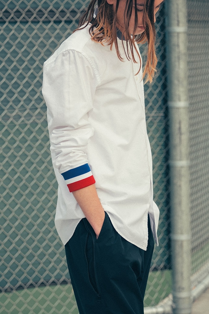 系列包括拼色冲锋衣、条纹及拼色衬衫、休闲西装外套等单品,以校园运动场作为拍摄背景的图辑,诠释了系列单品在设计上一贯坚守的现代极简主义。