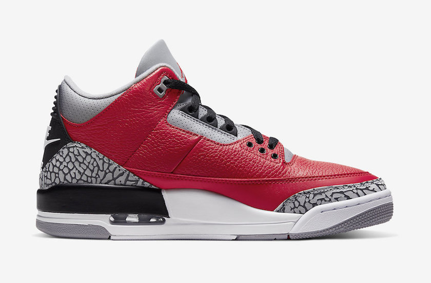 Air Jordan 3在近期新作频出,除了一款已经曝光的北卡配色之外,近期随着NBA全明星的临近,还有一款AJ3即将在全明星期间发售。那就是扮相相当高调的红水泥,鞋身以红色的荔枝纹皮革为主,搭配灰黑色的细节既复古又颇具个性。