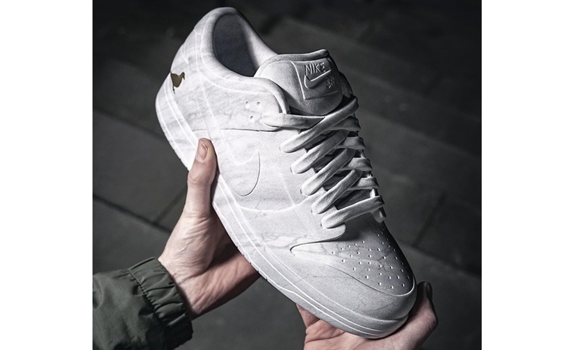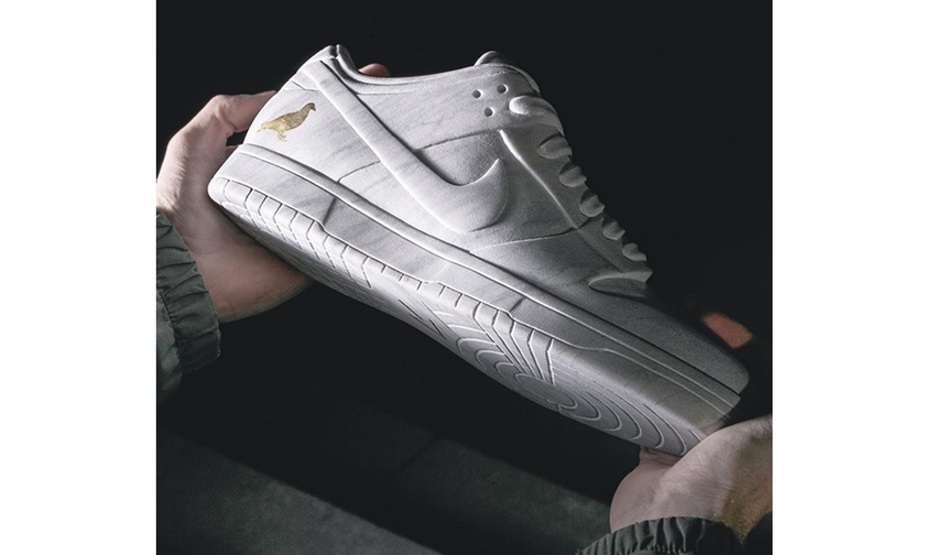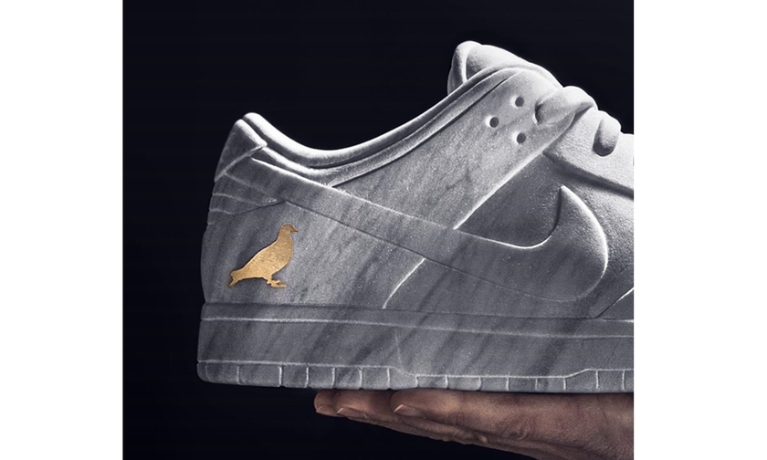 那款定制球鞋原本已是鞋圈的稀罕作品,而近日 Jeff Staple 又晒出另一款前所未见的 Nike SB Dunk Low“鸽子”版本。不过这次的并不是一双真正的“球鞋”,而是与雕塑艺术家 Marble Sculptor 合作打造的一款大理石雕塑。
