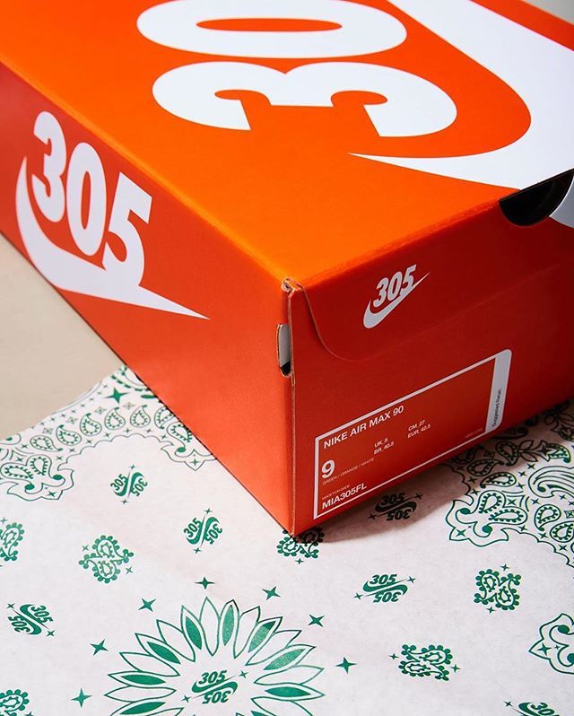 这款限量版鞋款整体以湖蓝色丝绸材质主打,橙色细节的注入,鞋舌与鞋盒上 Swoosh Logo 上的 305 字样,增强了辨识度,表明鞋款特殊身份。