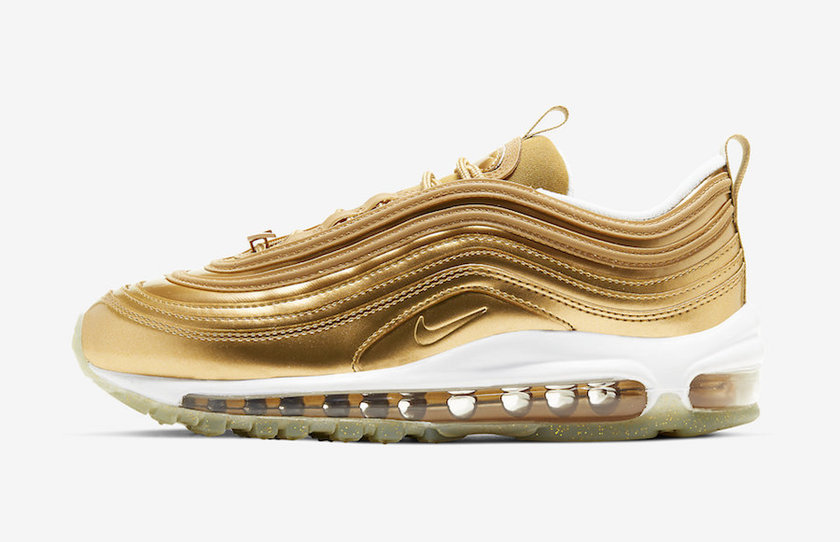 2017 年 Air Max 97 OG “Silver”“银子弹”的回归,掀起了一阵 Air Max 97 狂潮,这款复古跑鞋一度成为潮流爱好者最热爱上脚单品。到了 2020 年,为迎接东京奥运会,Nike 又打造了一款全新的“金子弹”Air Max 97 。