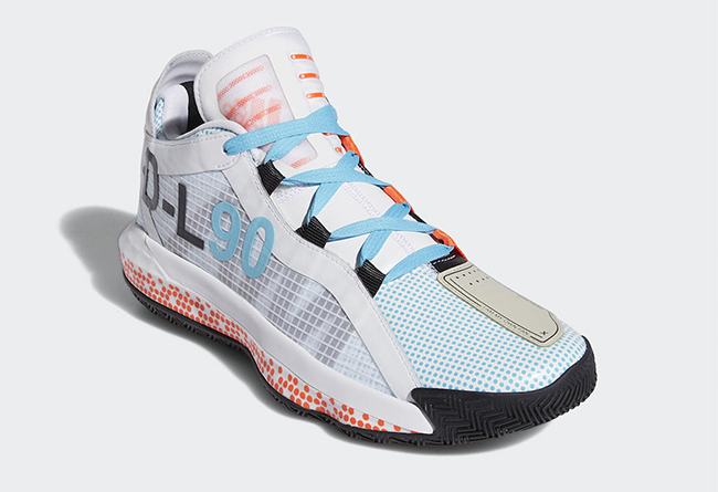 整双鞋采用白色主打,内外鸳鸯设计饰以波点、透明元素点缀,潮流感十足。鞋侧巨大的 DL-90 字样极其醒目,象征着 Damian Lillard 以及他出生的九十年代。