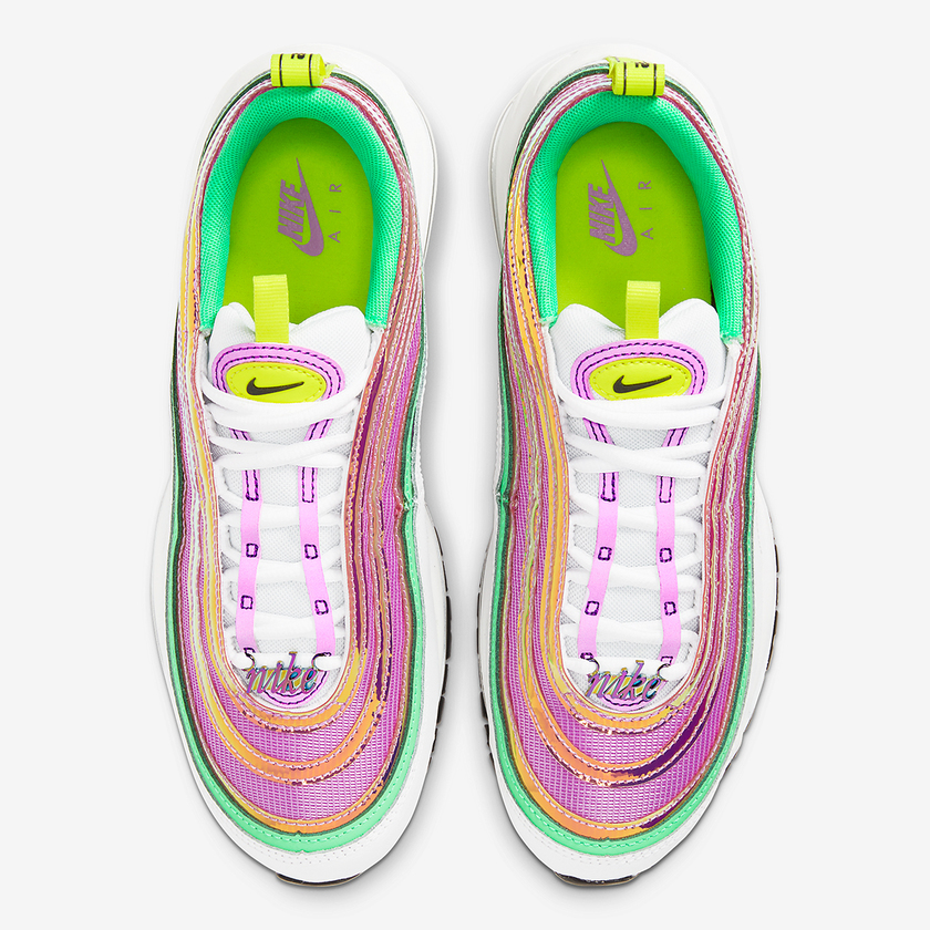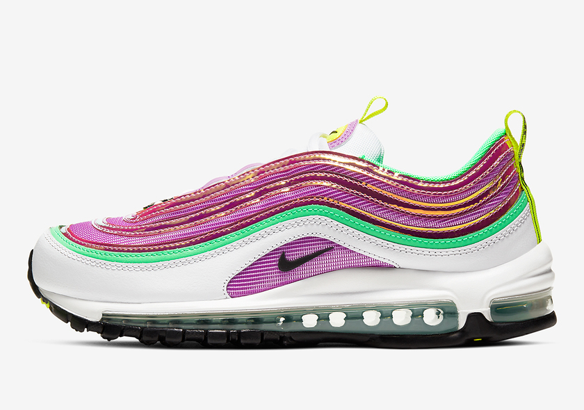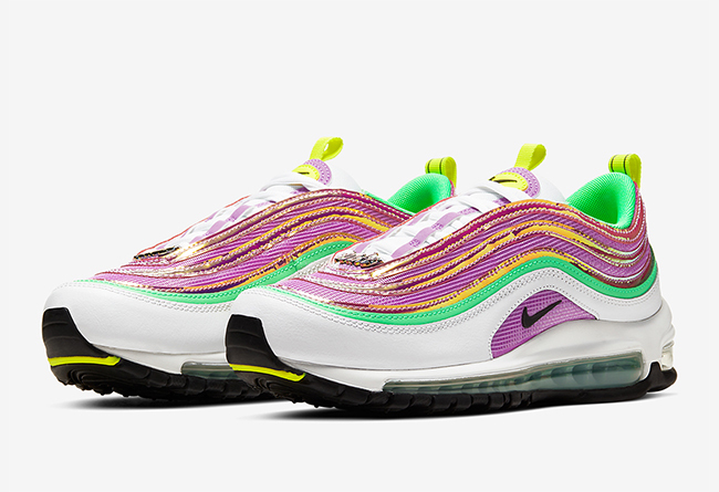 近日,Nike 又为旗下经典人气跑鞋 Air Max 97 打造了一款全新配色。这款配色采用抢眼的糖果色调装扮而成,苹果绿、荧光黄、罗兰紫等多色组合,搭配白色细节,讨喜又清新。鞋头部分 Nike 标牌玩味儿十足,为鞋款增加了亮点。据悉,这款配色近期会在海外发售,货号 CW5591-100 。感兴趣的小伙伴可以搜索货号了解~