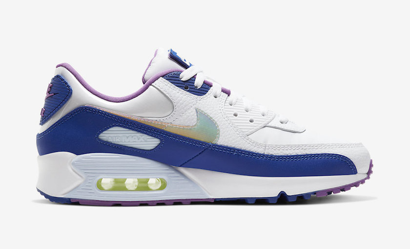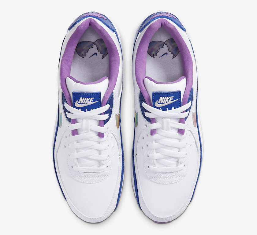 继复活节 SB Dunk High 配色曝光之后,又一款同样为复活节打造的 Nike Air Max 90 “Easter” 也在网上曝光了。这款配色以白蓝紫作为主调,织物材质、荔枝皮革与优质皮革的打造,呈现分明的层次感。