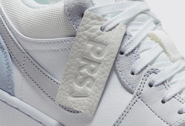 这款配色采用白色、米白、浅灰和浅蓝四色打造,皮革、麂皮以及织物网布的打造,质感极高。而印有巴黎 PRS 字样的吊牌也是一大亮点,增强辨识度的同时也彰显着特殊身份。