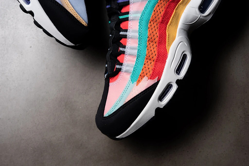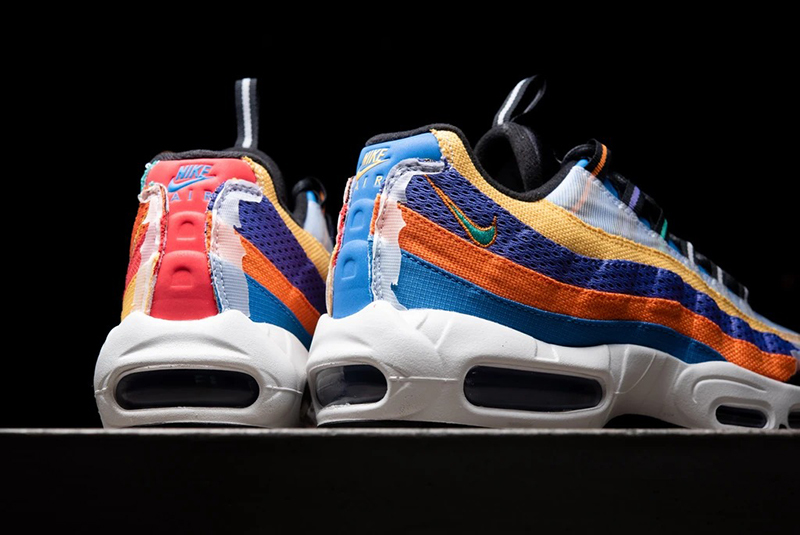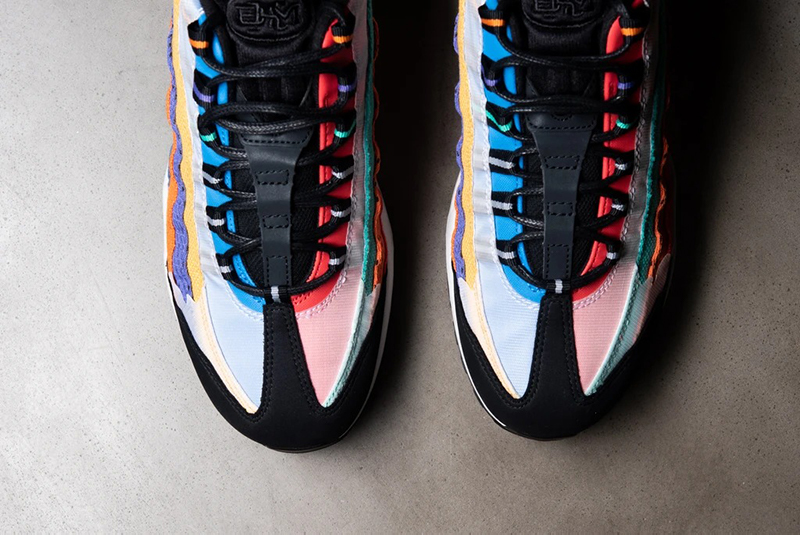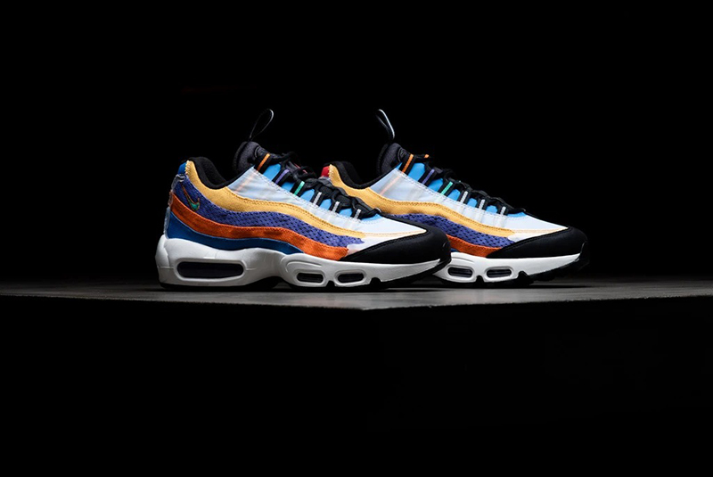 为庆祝黑人历史月,Nike 以经典跑鞋 Air Max 95 为蓝本,打造了全新的 Air Max 95 黑人月配色。该配色鞋身以蓝色、橙色、紫色、黄色以及白色等多种色彩拼接打造。