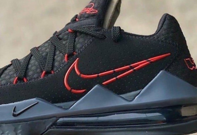 以《空中大灌篮 2 》主题配色首发登场的 Nike LeBron 17 Low 鞋型,近日又将迎来全新黑红配色。此番,该配色实物细节照已经在网上曝光,即将正式登场。