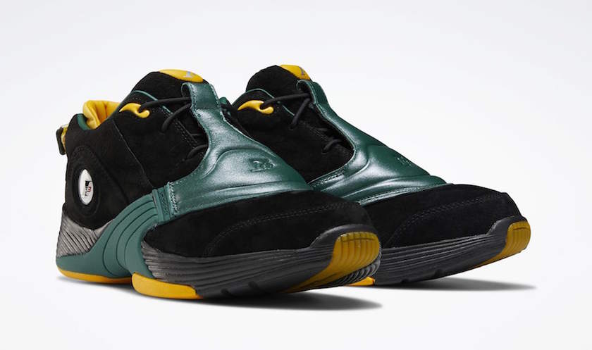 在鞋款的后跟、大底和标志性的鞋带系统则分别使用期高中专属的亮黄和墨绿色呈现。整双鞋款从用料到配色的使用都相当具有年代感,绝对是艾佛森球迷们的心头好。据悉这双鞋款将于2月28日发售,喜欢的朋友可以关注一下。