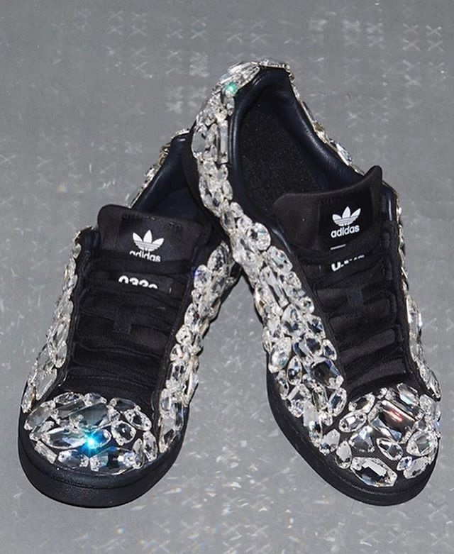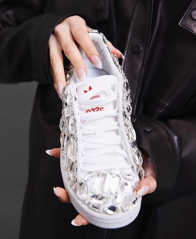 系列共包括两款配色分别以黑色和白色主打,鞋面布满的 Swarovski 水晶堪称最大的亮点,搭配鞋舌处双方品牌 Logo 。整个联名既具有极强的辨识度,又有着浓郁的奢华气息。