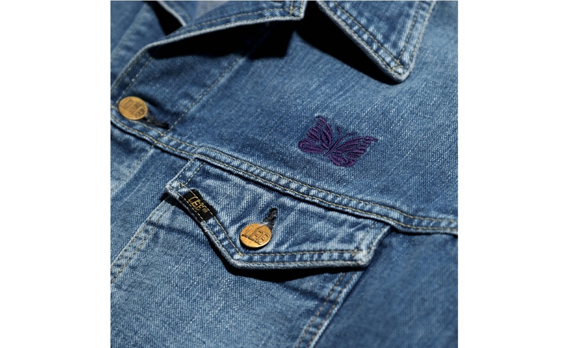 “LEE”字样 logo 标识搭配 Needles 极具辨识度的紫色蝴蝶刺绣图案,醒目复古。目前 Needles x LEE 全新合作系列已正式上架 Nepenthes 线上商店以及线下店铺发售,喜欢的朋友可以了解一下。
