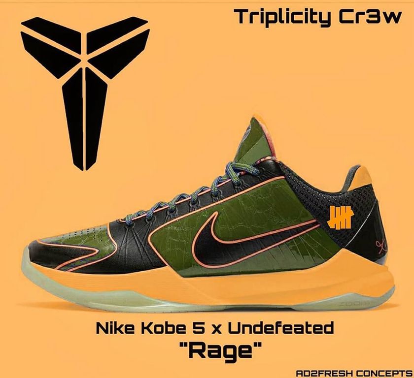 早前就有消息传出,今年美国知名街头品牌 Undefeated 将再度与 Nike 联名,以 Kobe 5 Protro 为蓝本带来全新联名系列。近日,网上曝光了一张 UNDEFEATED x Nike Kobe 5 “Rage” 的渲染图,让人家心生期待。