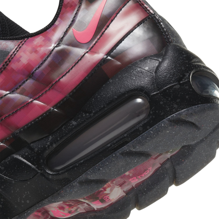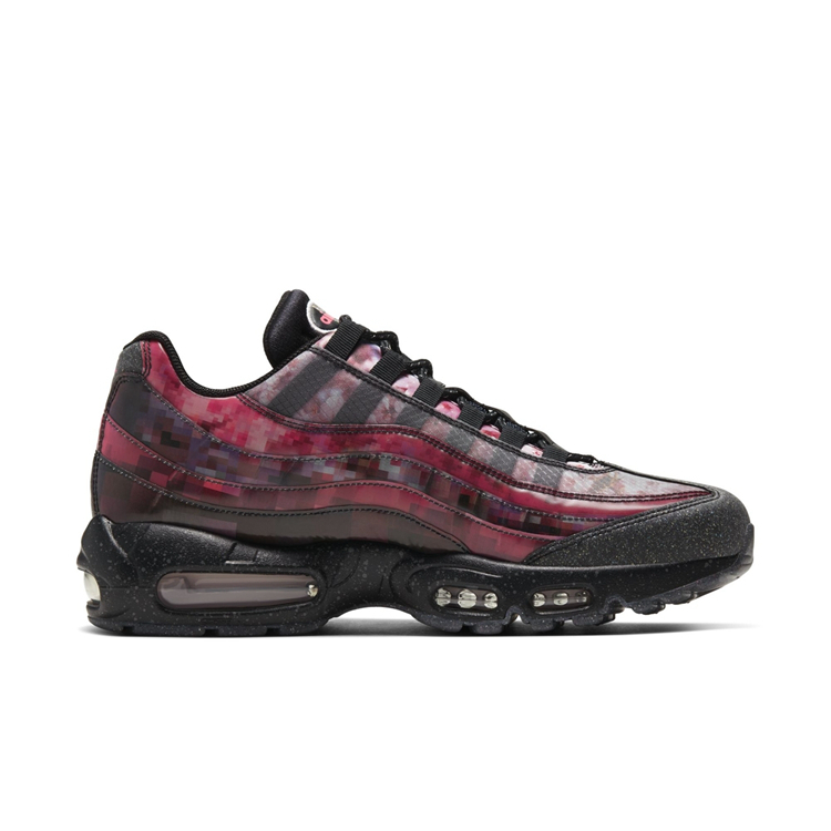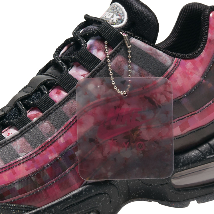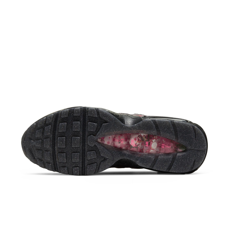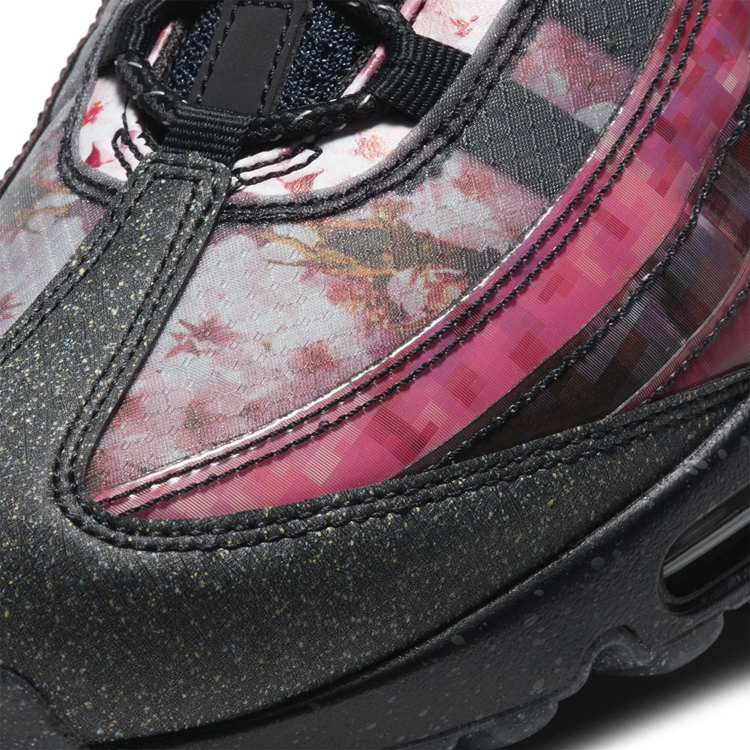 这款全新的 Air Max 95 采用黑粉色调主打,精致甜美的樱花图案与马赛克纹理,搭配透明蝉翼材质与尼龙物料,呈现出魅惑吸睛的视觉效果。