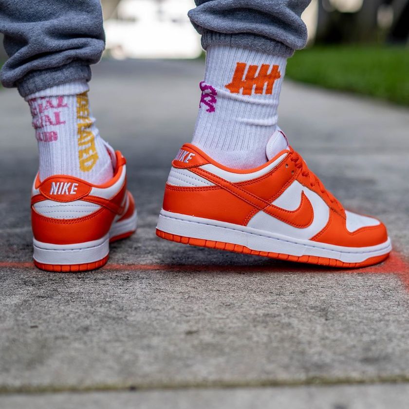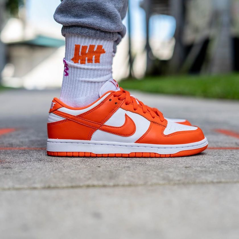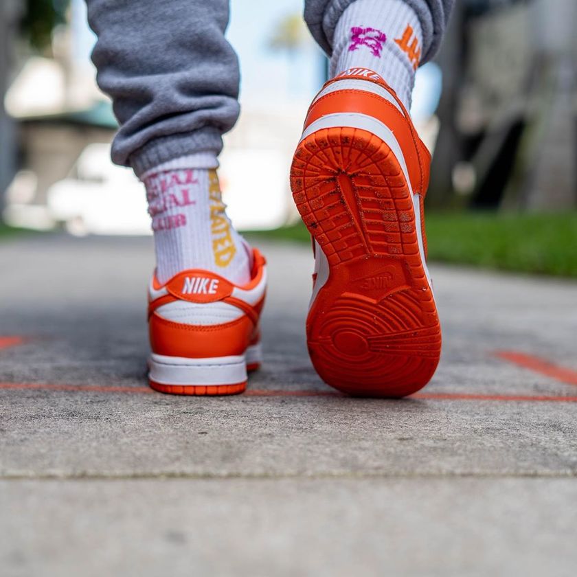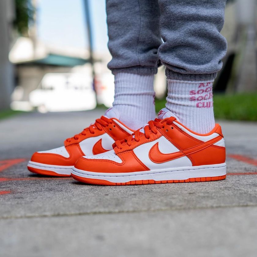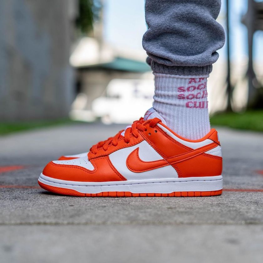 目前美区 Nike SNKRS 已经发布了雪城大学 Nike Dunk Low 预告。这款配色在上个月就因 Travis Scott 上脚而备受关注,橙白皮革拼接而成,不仅复古经典,活力学院气质也符合当下季节上脚。
