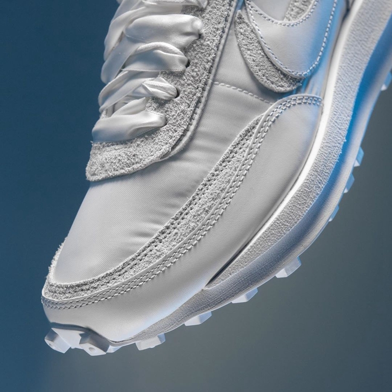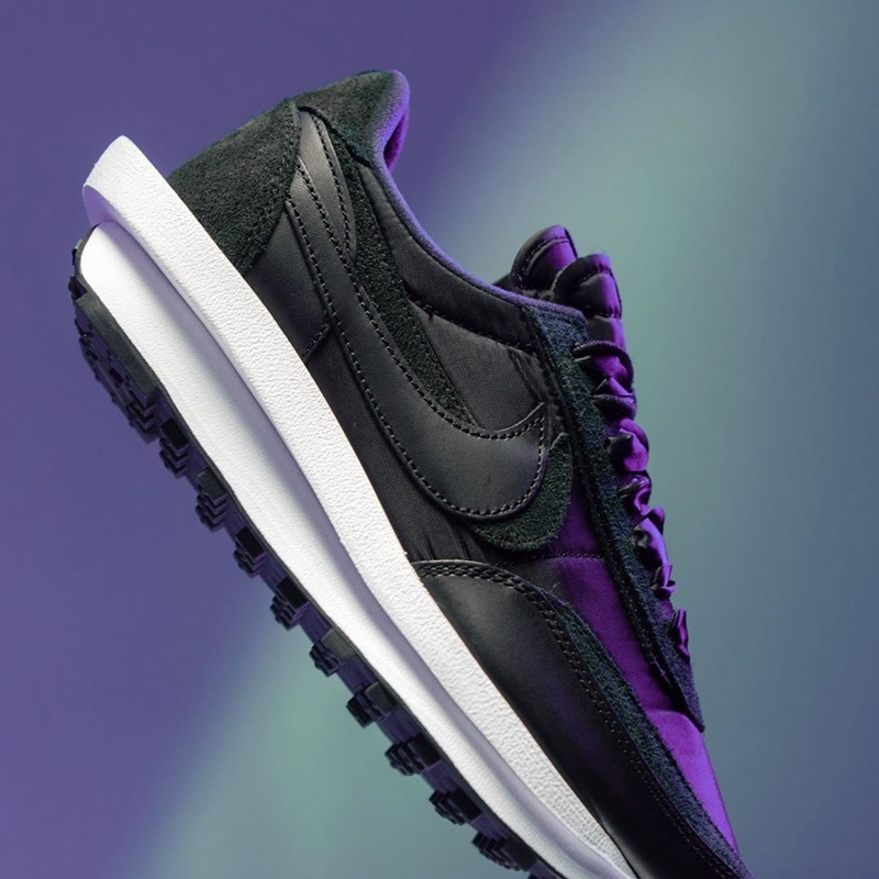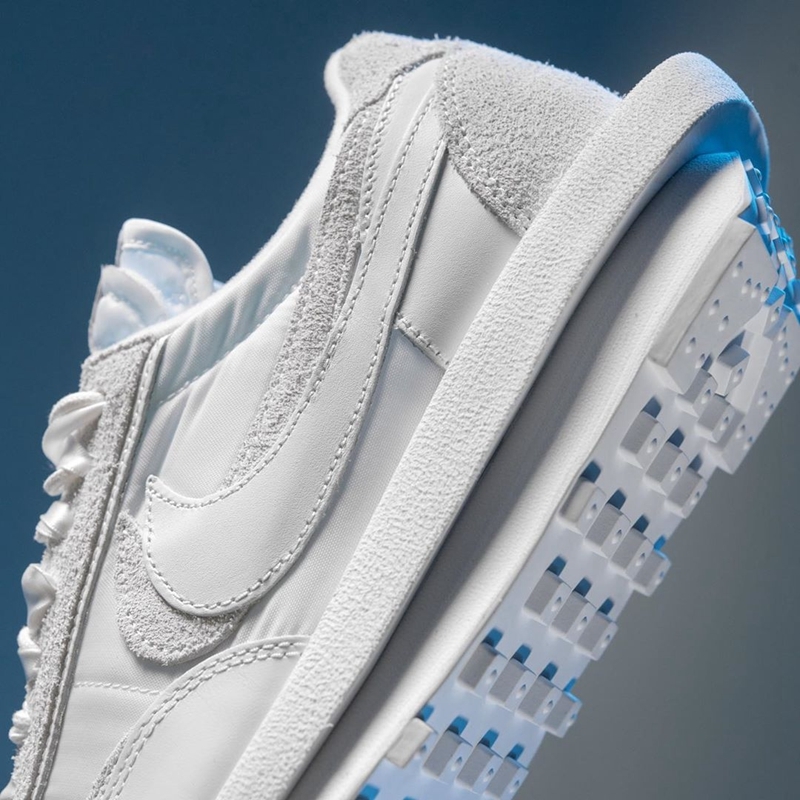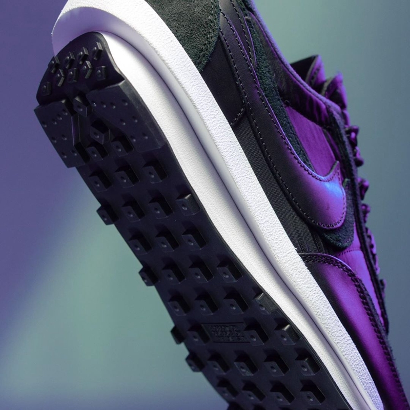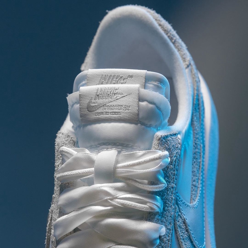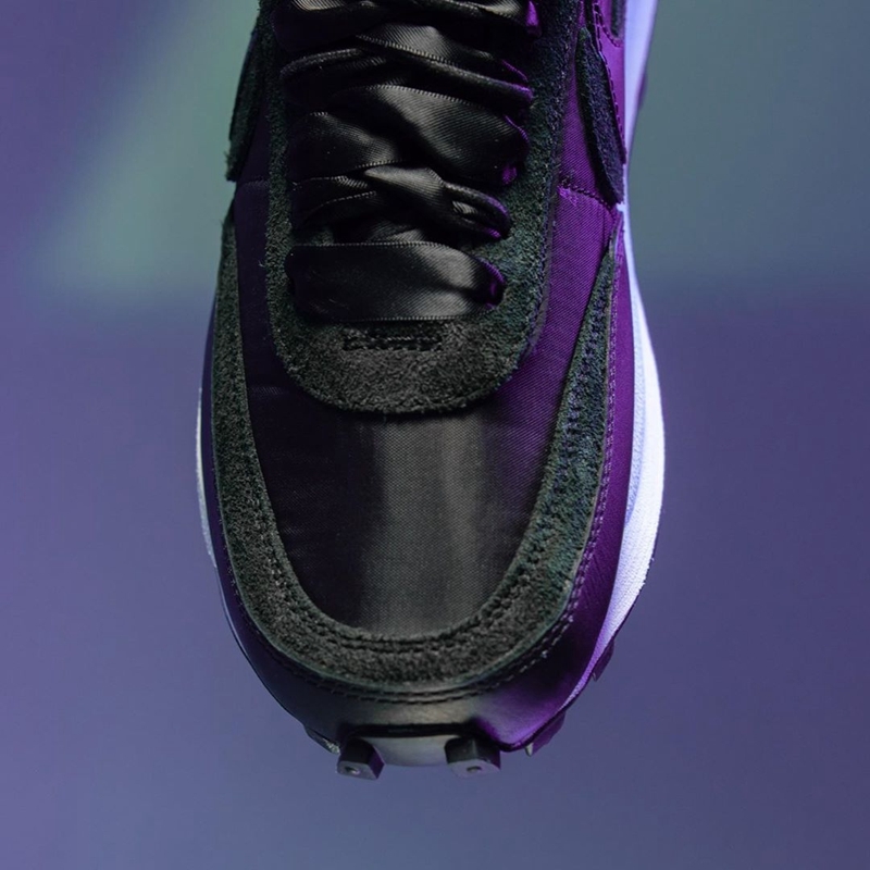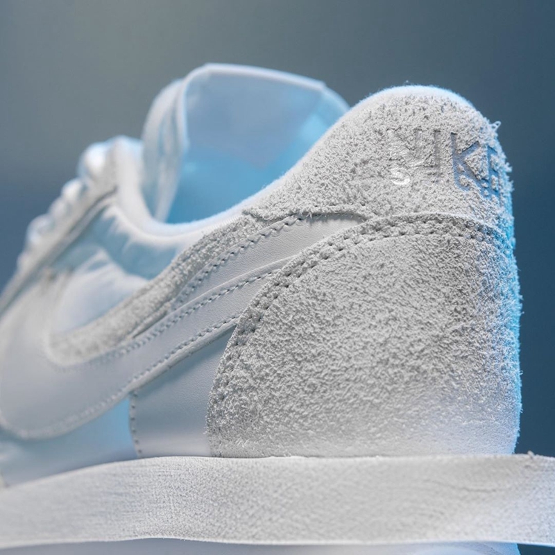 双鞋舌、双 Swoosh 设计,突显 sacai 独有的解构理念。而宽大的绸缎鞋带也不失为一个亮点,让人更为心动。