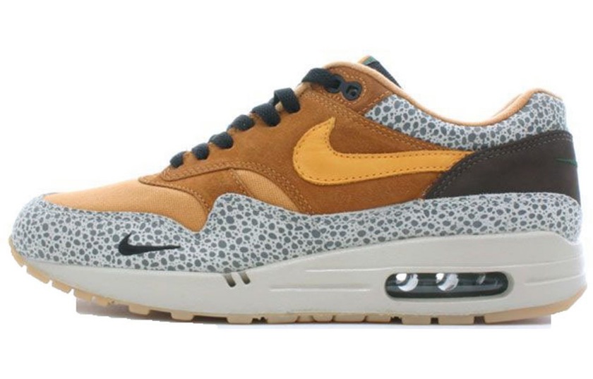 2003 年日本 atmos 携手 Nike 打造了 Air Max 1 “Safari”联名,使 Air Max 1 “Safari ”成了Air Max 历史上最具代表性的配色之一,也使“Safari ”主题成了球鞋圈的经典主题。