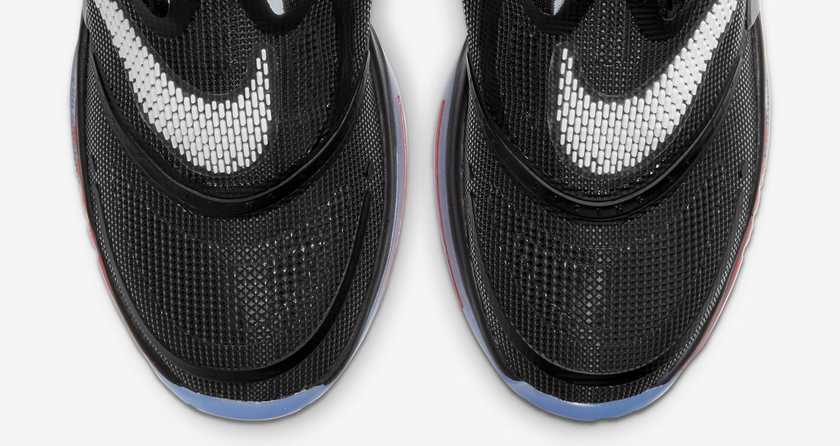 外观设计方面,即将发售的配色以黑色为基础并融入银色、白色及红色细节,吸睛度极高。覆盖鞋面的巨大的像素风 Swoosh 也带来更强烈的科幻感。