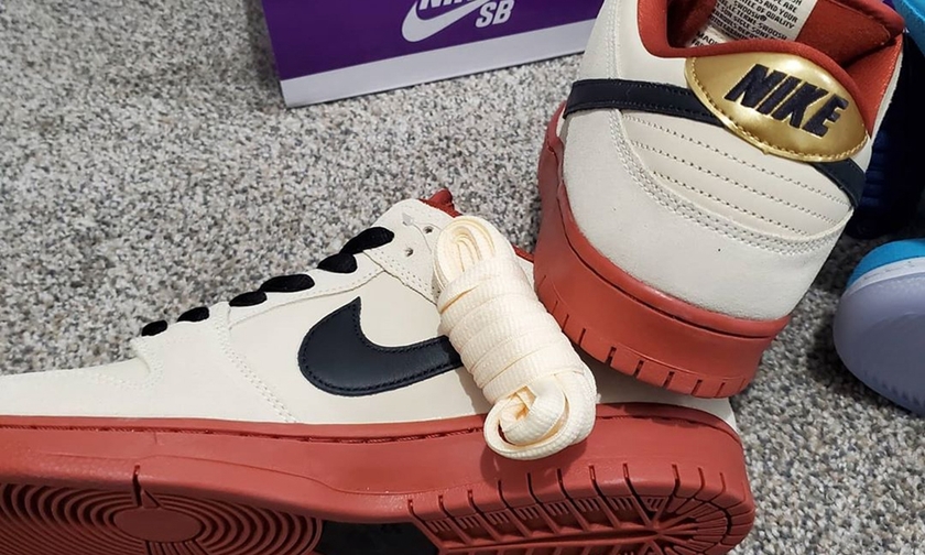 其中“Muslin”配色采用奶油白色作为主调,黑色 Swoosh 以及砖红色鞋底点缀,营造出强烈的视觉色差。后跟金色细节颇为考究,彰显出配色的华丽复古气质。
