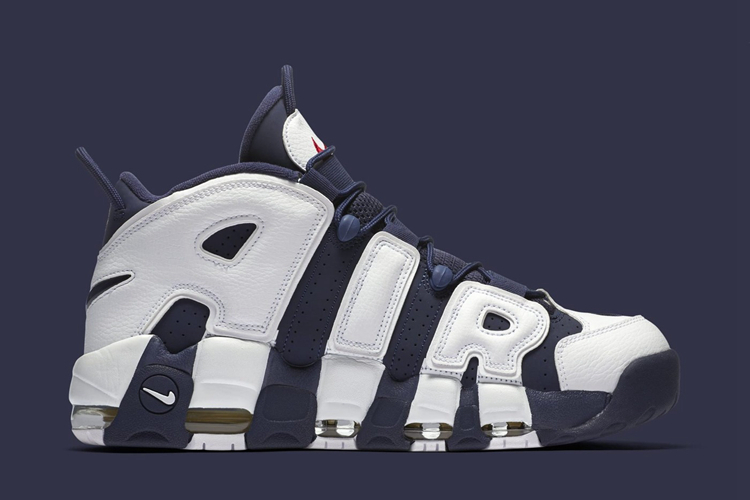近日,Air More Uptempo 经典奥运配色复刻回归。依旧以白色和海军蓝色调呈现当年经典美国队配色风格。鞋侧标志性 AIR 字样,后跟 Swoosh Logo 与皮蓬梦之队 8 号刺绣,极具辨识度,直击奥运主题。