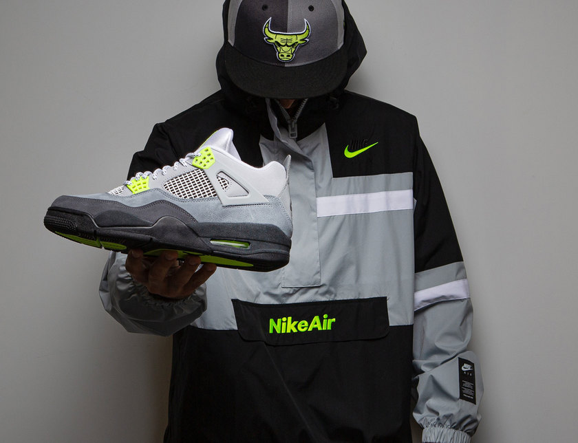 最近AJ4将Neon移植过来取得了不俗的关注,很大一部分原因在于这款AJ4将配色和其摆放都学了过来。Air Max 95的精髓在于波浪式的鞋面能够完美呈现配色,这款AJ4做到了这一点,将外底和鞋面做了从黑到灰的不同层次渲染。