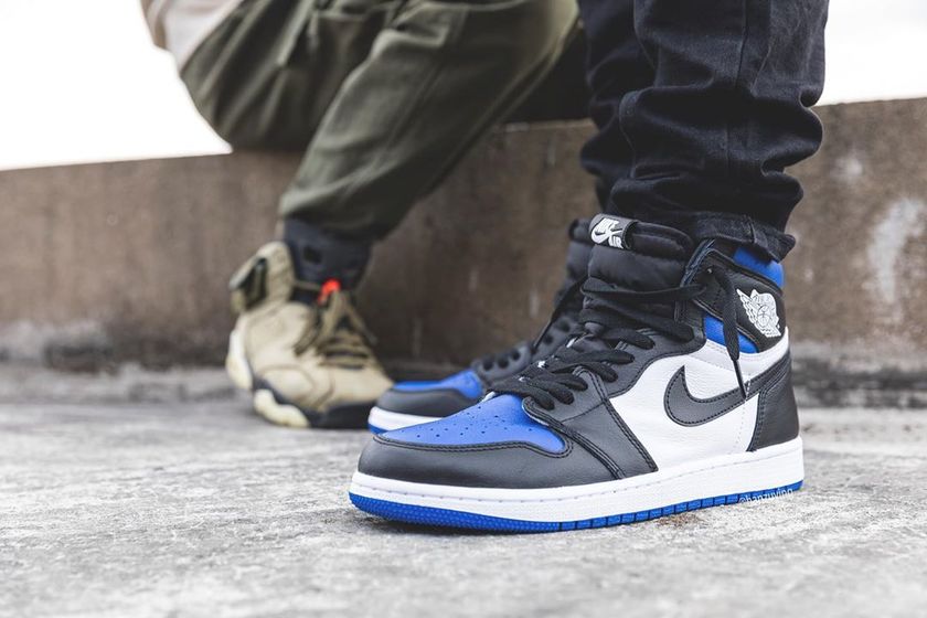 AJ1的辉煌可以说是从2018年年底开始,当时一双渣渣灰配色和小闪电配色的亮相迅速吸引了大家的目光,随后小闪电配色的价格不断走高,足见大家于皇家蓝色系在AJ1上的喜爱,而蓝色在AJ1上的使用也确实是非常稀有。
