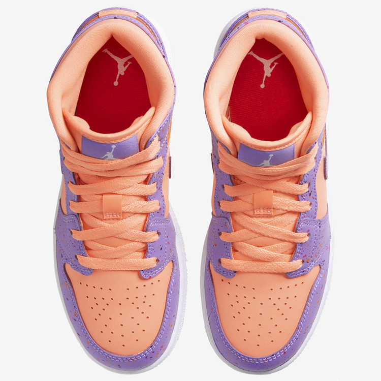 这款配色以珊瑚粉和紫色皮革拼接而成,紫色部分黑粉泼墨元素如梦似幻,尤为吸睛。最后搭载白色鞋底,整双鞋甜美抢眼却不失清新活力,实为一款上脚利器。