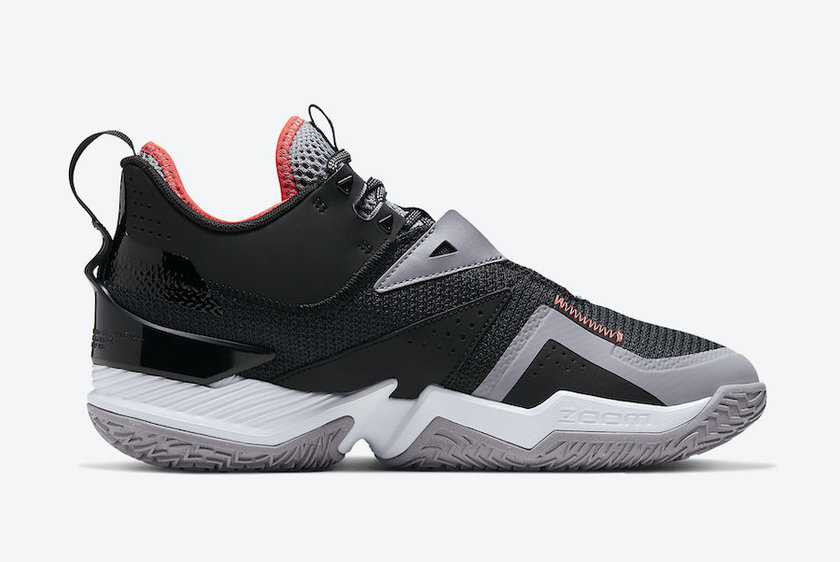 采用黑灰色调搭配红色细节示人,这款新配色气质高冷帅气。织物搭配皮革和热熔补强塑造的鞋面,层次感与质感丰富。解构理念融入,带有威少一贯的潮流气息。Zoom 气垫中底与波浪形纹路外底,则保证了实战性能。