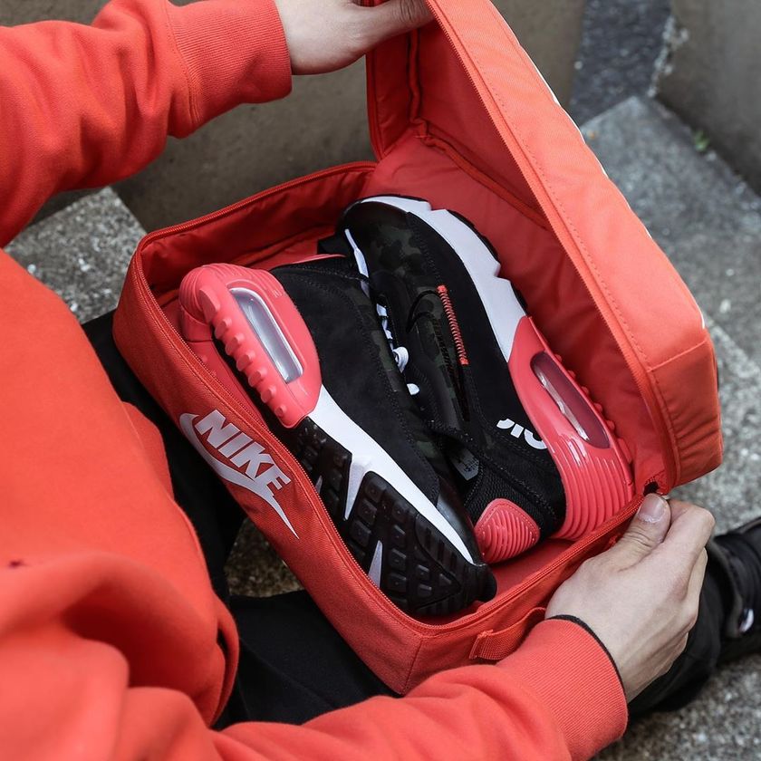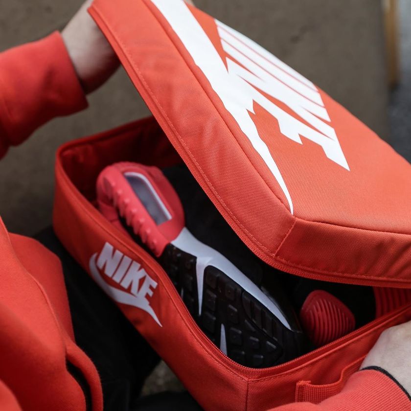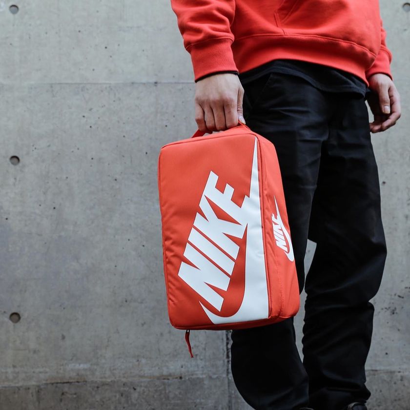 近日,为了让各位鞋迷们带鞋出门更方便更有排面,Nike 推出了一款球鞋提包。提包外观类似鞋盒,以大红装扮搭配巨型 Swoosh Logo 示人,辨识度极高。