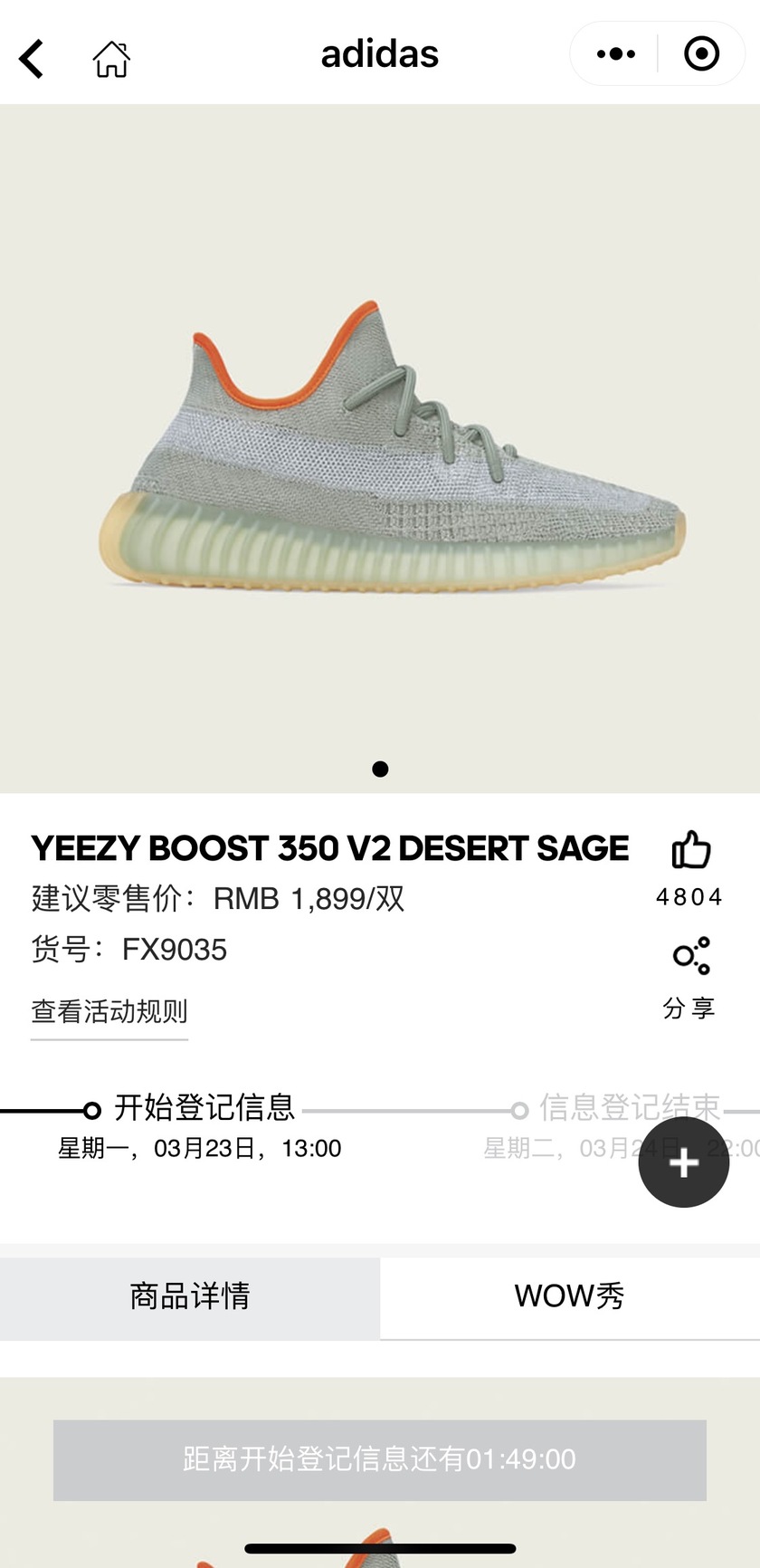 继 Yeezy 380 今早开启预约后,全新的 Yeezy 350 V2 “Desert Sage”也即将开启登记。登记时间从下午一点开始至 3 月 24 日 22:00 结束,预约时间则是在 3 月 25 日 10:00-11:00 ,预约结束后在发售前会通知是否中签,中签的朋友则可在 3 月 28 日 10:00-14:00 之间进行现场购买。