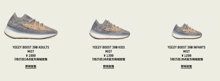 3月25日也就是明早 10 点在 adidas 官网正式以全家族尺码发售,成人鞋款售价 ¥1999 元,童鞋售价 ¥1399 元,婴儿鞋售价 ¥1299 元,不要错过了。