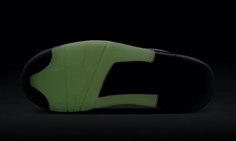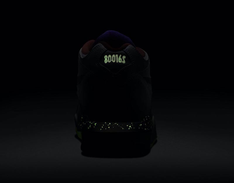 这款新配色规格不凡,鞋身采用优质白色皮革塑造,鞋舌鞋身细节点缀了 3M 反光元素。而鞋带扣、外底及泼墨中底则暗藏了夜光效果,吸睛度爆棚。