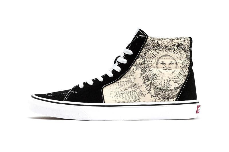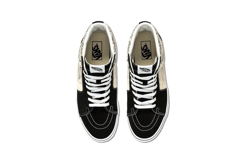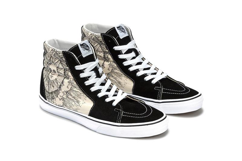 以神话中的奥罗波若蛇 (Ouroboros) 为主题,Vans 带来了全新鞋款系列。系列包含 Vans Sk8-Hi 和 Vans Era 两款经典鞋型。其中 Vans Sk8-Hi 以黑色主打,鞋帮处精致的手绘风格图案大气磅礴,尽显独特神话风格。