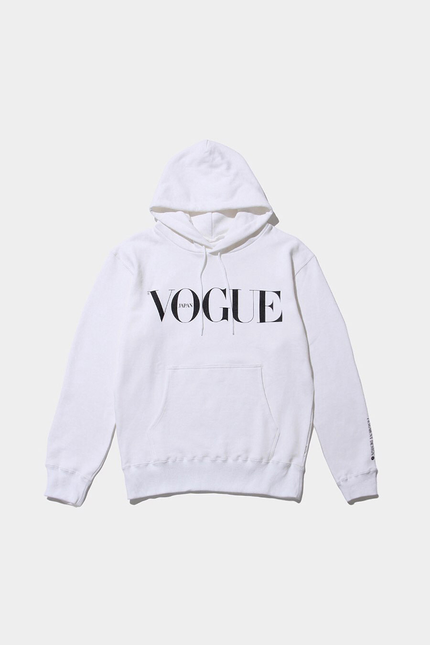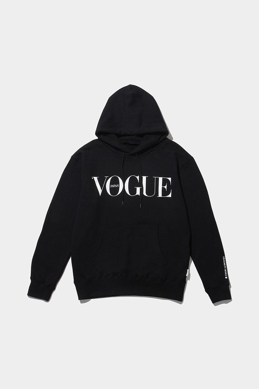 系列单品包括 T 恤、连帽卫衣等, VOGUE logo 作为主打设计搭配“JAPAN”字样,辨识度极高,而 fragment design 双闪电 logo 也作为点缀出现在卫衣袖口部分。