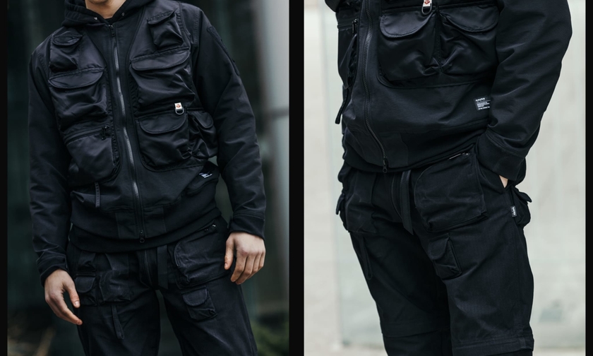黑色作为主调,Velcro 、CORDURA 等高水准面料科技应用,保证了设计的专业级水准,也为单品增添了具有现代感的城市机能色彩。