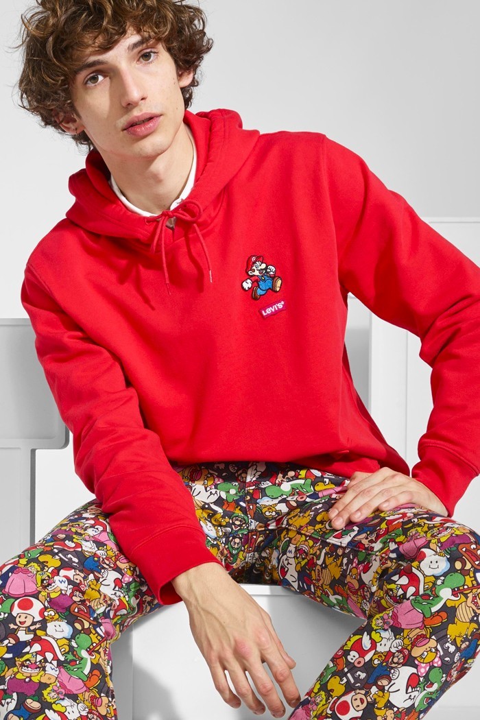 Levi’s 携手《超级马里奥》打造了全新的联名系列,系列包括 T 恤、连帽卫衣、Trucker Jacket 以及 501’93 牛仔裤等单品。大红帽衫与背带牛仔裤一搭,活脱脱就是马里奥本人了。