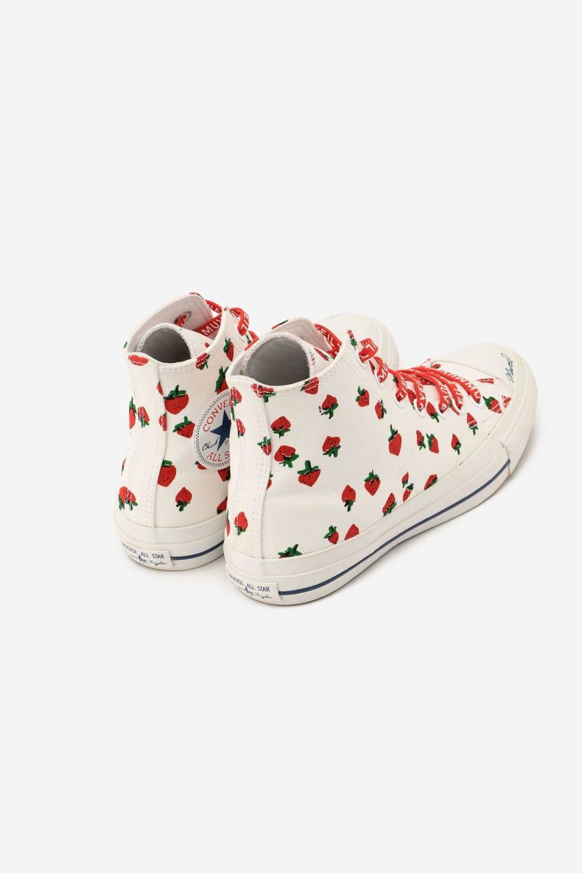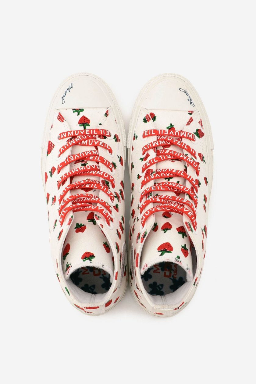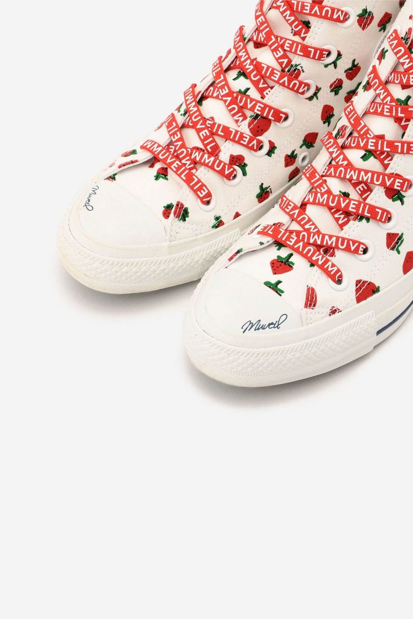迎合当下季节,CONVERSE 的日本支线 CONVERSE TOKYO 携手 MUVEIL 推出了一款春日气息满满的全新联名。联名以经典鞋款 All-Star 为蓝本塑造,纯白色主打搭配满满覆盖的草莓印花,少女心爆棚。