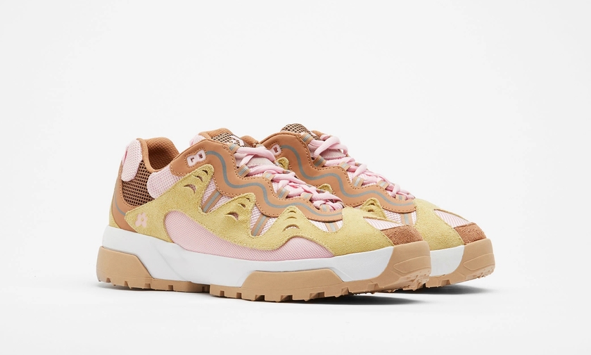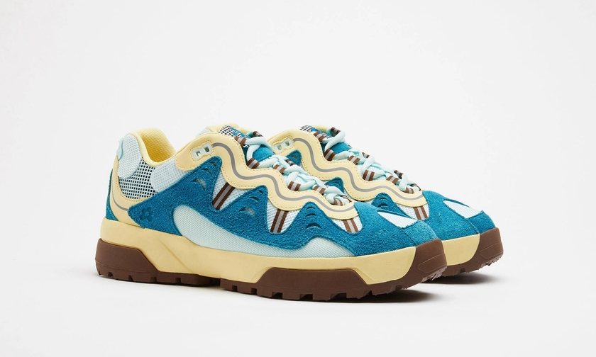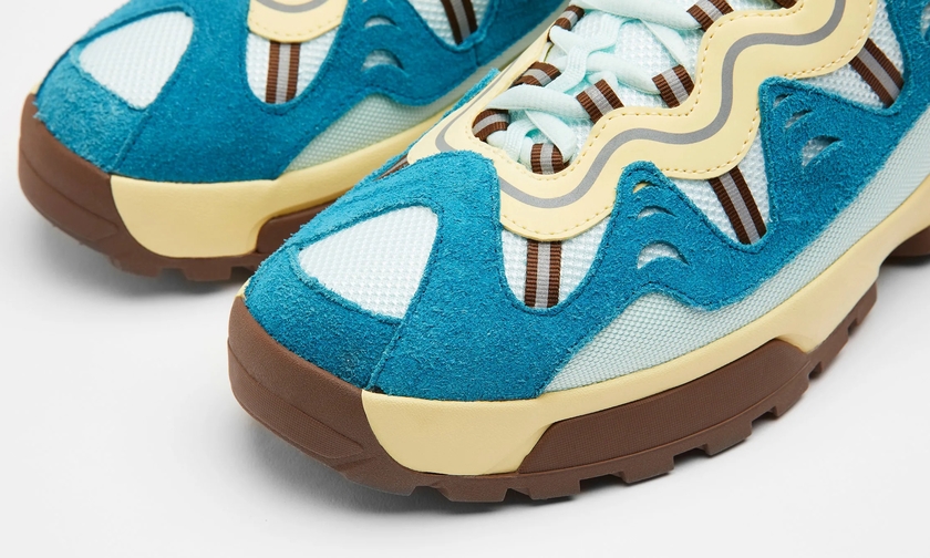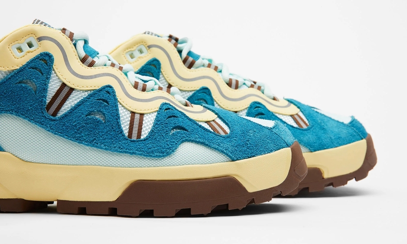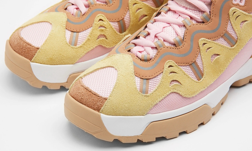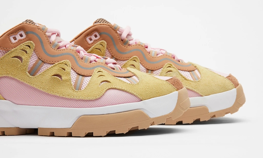此番,延续该联名系列设计,双方又将推出两款新配色。新配色分别以卡其色/粉色,以及米白/蓝色组合呈现。麂皮、皮革、网布材质拼接,层次感丰富,质感出众,相信会是春季绝佳上脚鞋款之一。