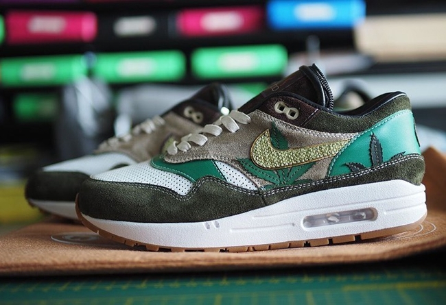 除了 Nike 推出一款超限量反转臭鼬配色 SB Dunk High 迎接 420 主题日以外, 墨尔本定制团队 BespokeIND 也打造了一款特别的 420 主题 Air Max 1 。