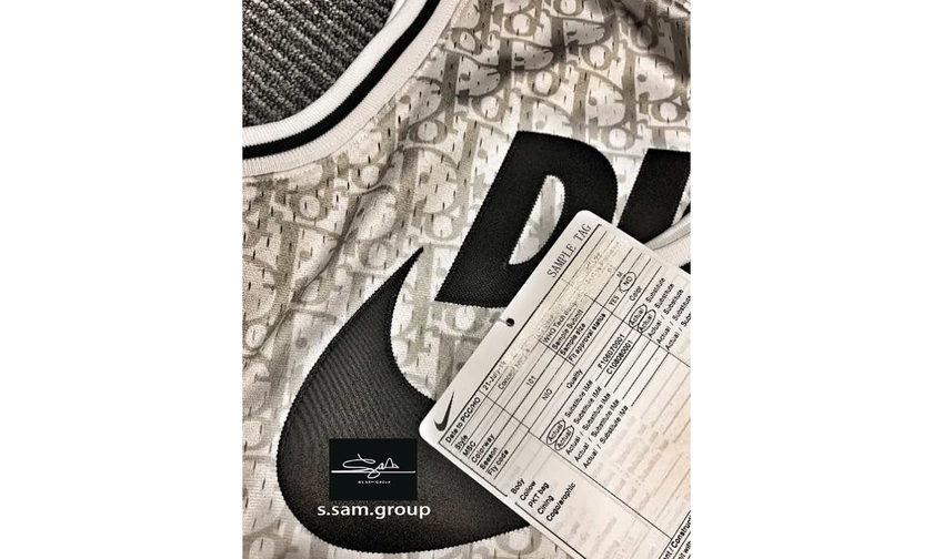 近日球鞋爆料账号 @ s.sam.group 为我们展示了一款前所未见的 Dior x Jordan Brand 球衣 Sample 设计。整件球衣以 Dior 老花满印呈现,“Swoosh + DIOR” 以巨型刺绣的形式贯穿于正面,辨识度极高,奢华感也极强。